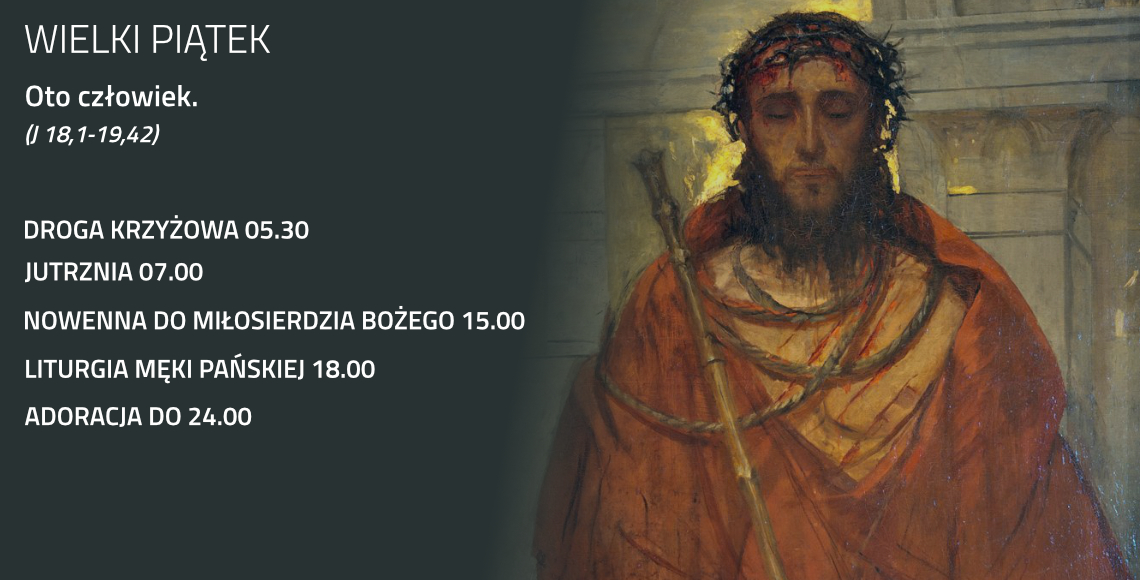 Jezus więc wyszedł na zewnątrz, w koronie cierniowej i płaszczu purpurowym. Piłat rzekł do nich: «Oto Człowiek».