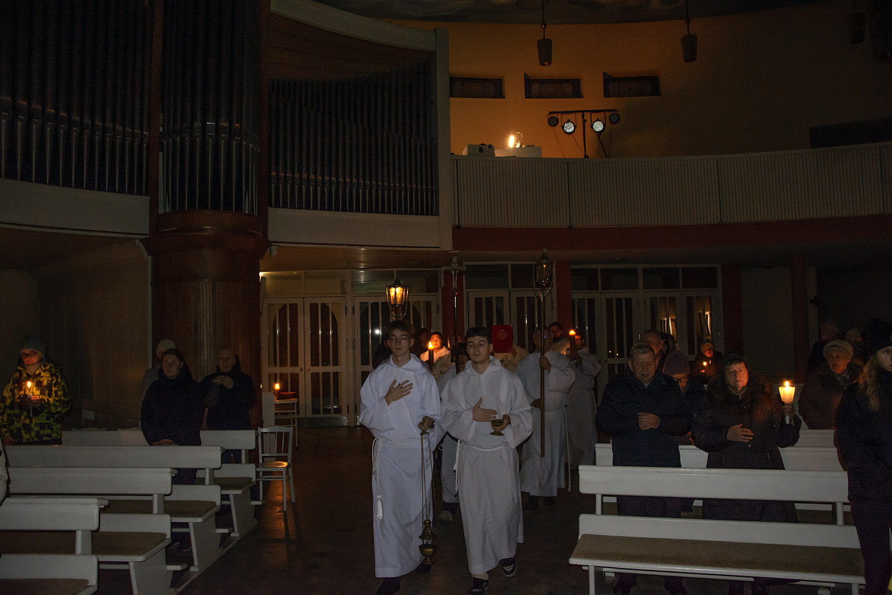pół godziny przed każdą Mszą świętą